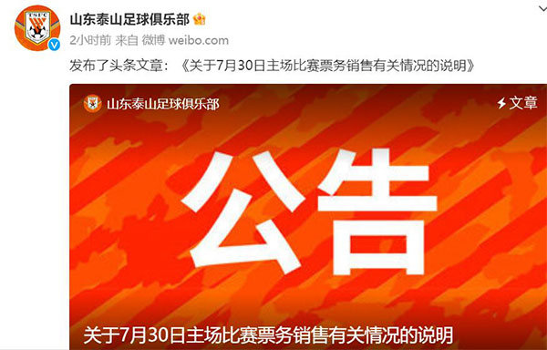 本场泰山队和国安的比赛球票销售火爆,记者了解到,本场预计有超过4万名球迷进场观赛,创造本赛季泰山队主场单场球迷人数之最。近期,泰山队球迷抢票也成为一个热点,多个售票平台出现一票难求的局面,在这样的情况下,泰山队球迷要注意别“上当受骗”,提防诈骗和假票。针对本场比赛的票务销售情况,山东泰山官方在27日专门进行说明,并且表示:“俱乐部将加强与有关单位沟通协调,最大限度开放观赛区域,让更多球迷得到入场观赛机会。”