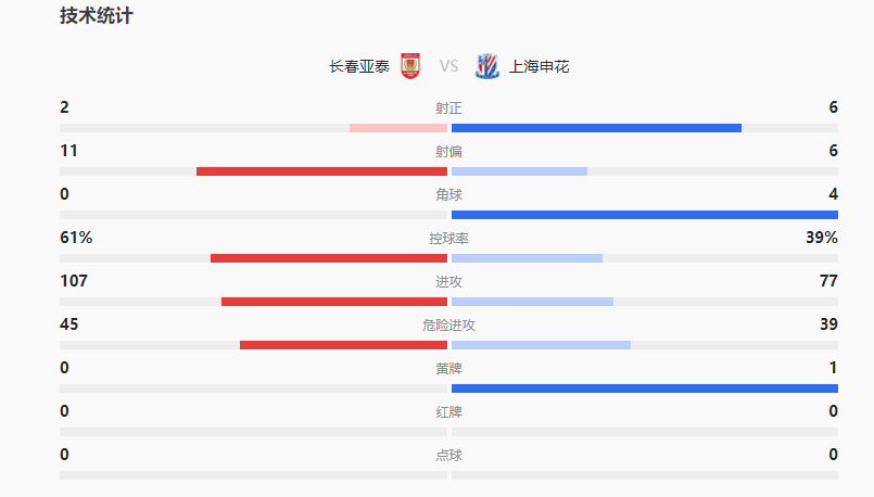 关键事件: 第8分钟,亚泰左路传中给到禁区,连续两脚打门被封堵,张宇峰分到小禁区线上,程长城顺势打门得手!长春亚泰1-0上海申花↓