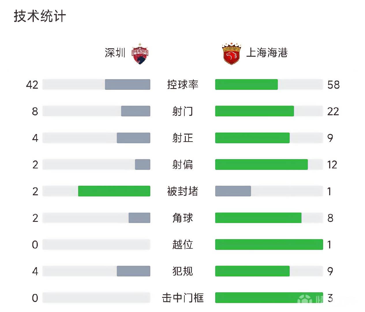 最终上海海港客场4-1战胜深圳,深圳联赛遭遇7连败。
