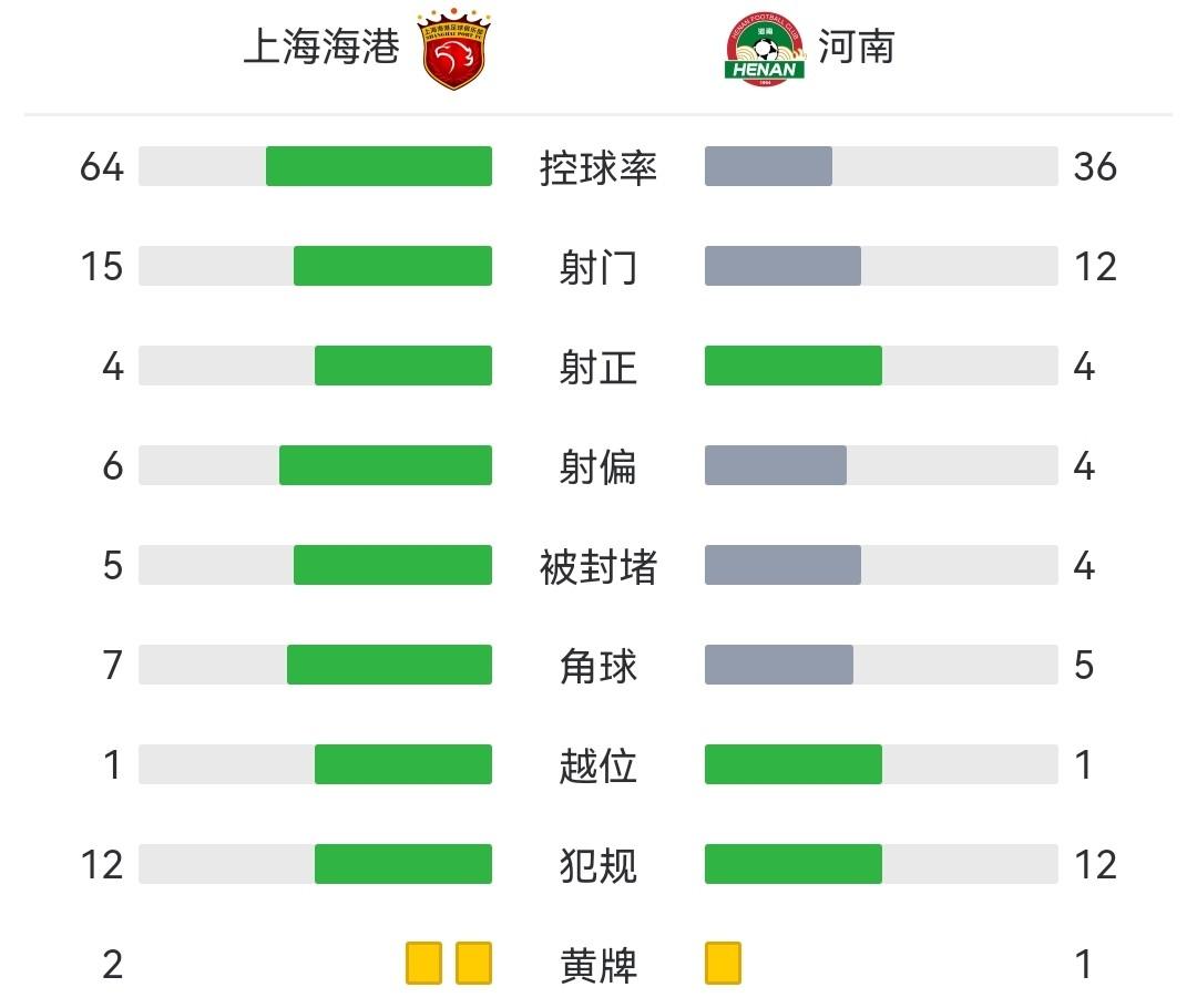 查看:上海海港队vs河南队 全场录像技术统计: