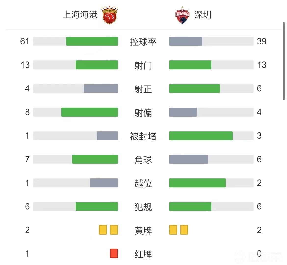 24直播网讯:北京时间4月22日15:30,中超第2轮,上海海港坐镇上汽浦东足球场迎战深圳队,本场主裁是戴弋戈,艾堃出任视频助理裁判。上半场,蒋光太补射先下一城,吕文君远射击中横梁;下半场,蒋光太铲倒阿奇姆彭被直红罚下,平科攻入个人联赛首球,随后姜至鹏角球直接破门扳回一城,阿奇姆彭头球将比分扳平,终场前武磊单刀打入绝杀球。最终十人海港3-2险胜深圳。