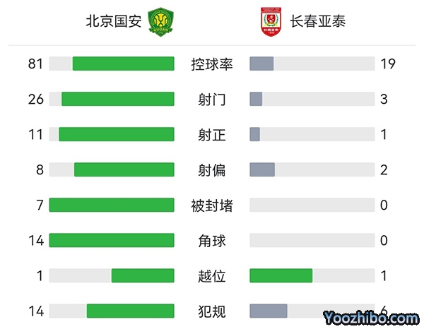全场比赛结束,最终北京国安3-0长春亚泰。