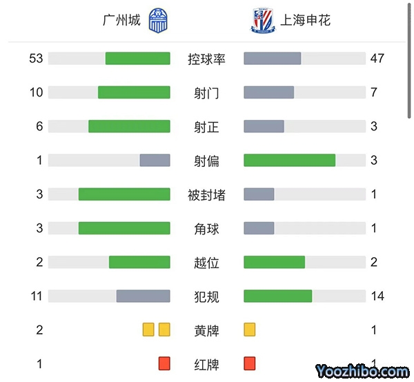 申花1-1广州城 艾迪破门李提香失误送礼+染红吉列尔梅绝平