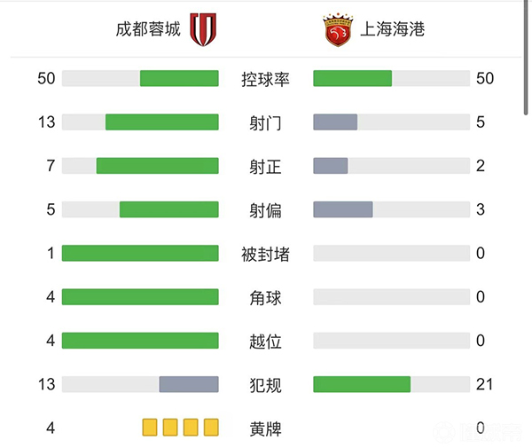 24直播网讯:北京时间12月10日15:00,中超第30轮,成都蓉城对阵上海海港,本场比赛在晋江体育中心体育场进行。本场比赛刘威执法,戴弋戈出任VAR助理裁判。上半场比赛,恩迪亚耶单刀打在张岩身上错失良机,颜骏凌极限救险;下半场,胡荷韬遭卡隆踩踏,主裁未出牌警告,甘超终场前破门被吹无效。最终,成都0-0战平海港。