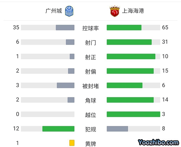 全场比赛结束,海港2-1广州城。