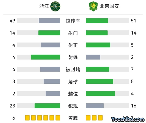 全场比赛结束,最终浙江2-0国安。
