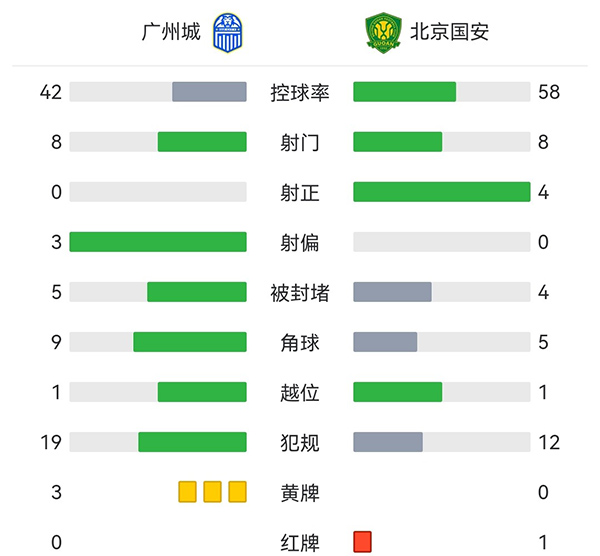 24直播网讯:北京时间11月21日19:30,中超第26轮展开争夺,广州城坐镇晋江足球训练中心体育场迎战北京国安,本场主裁判为甄伟,VAR裁判为戴弋戈。上半场,张玉宁泰山压顶头槌闪击,姜祥佑传射建功。下半场,于大宝被直红罚下,吉列尔梅补时阶段点射扳回一城。最终,十人国安2-1击败广州城。