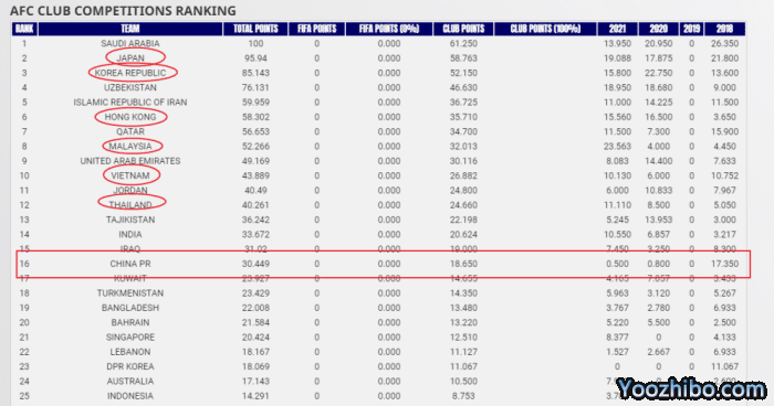 24直播网10月20日一件意外又不意外的消息,在整个亚洲足坛发酵。根据亚足联官方消息称,中超排名一落千丈,上赛季的技术分只获得0.50分排名第16位。值得一提的就是,港超、马来西亚、越南、泰国的排名都在中超之前。也就是说,广州队衰败之后,不仅没有中超俱乐部获得冠军,甚至表现过分糟糕导致中超整体不行。