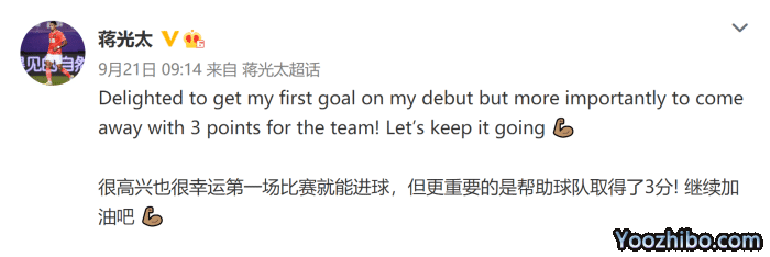旧客新事!蒋光太发英文庆祝进球