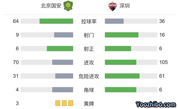 国安4-1深圳 张玉宁头槌双响于大宝王子铭破门