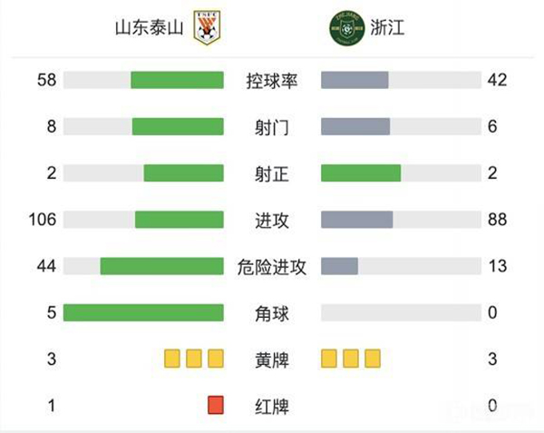 全场比赛结束,山东泰山1-0战胜浙江。
