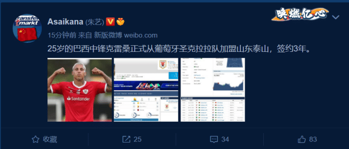 24直播网04月06日讯 ,德转朱艺确认,效力葡超圣克拉拉的巴西前锋克雷桑正式加盟山东泰山队,克雷桑和泰山队签订3年合同。现阶段,克雷桑还在葡萄牙,等待相关手续的办理,新赛季他也是泰山队锋线的补强。与此同时,泰山队的精英队正式出征亚冠小组赛。
