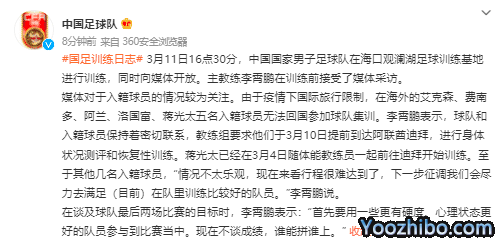 24直播网3月12日讯 北京时间今天,国足在海口观澜湖足球训练基地进行训练,同时向媒体开放。主教练李霄鹏在训练前接受了媒体采访。