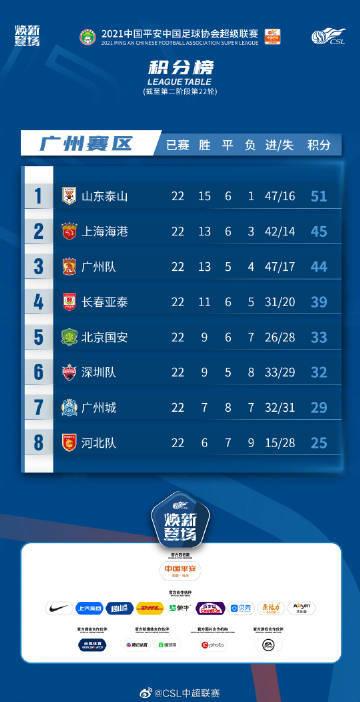 本赛季,山东泰山提前3轮锁定中超冠军,这也是球队2010赛季后首次联赛夺冠。上海海港和广州队分居第二第三。