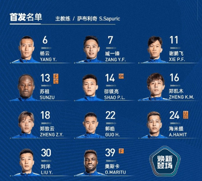 武汉队首发阵容: