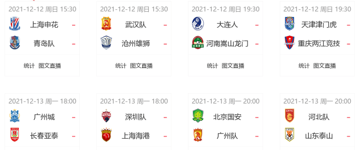 24直播网讯 北京时间12月12日和13日,中超联赛保级组和争冠组的比赛展开争夺。第15轮的比赛,争冠组广州队和国安的对决还是值得关注,两队本土球员的表现是个看点。泰山队对阵河北,要全力拿到3分。保级组青岛队、大连队的积分较少,他们每场比赛都非常关键,争取拿到分数。
