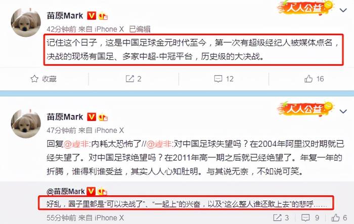 而国内记者苗原也在社媒上感慨,“好乱,圈子里都是,可以决战了,一起上的兴奋,以及,这么整人还有谁敢去担任主帅的声音”。“请记住这个日子,这是中国足球金元时代至今,第一次有超级经纪人被媒体点名,决战的现场有国足,多家中超与中冠平台,历史级的大决战”。