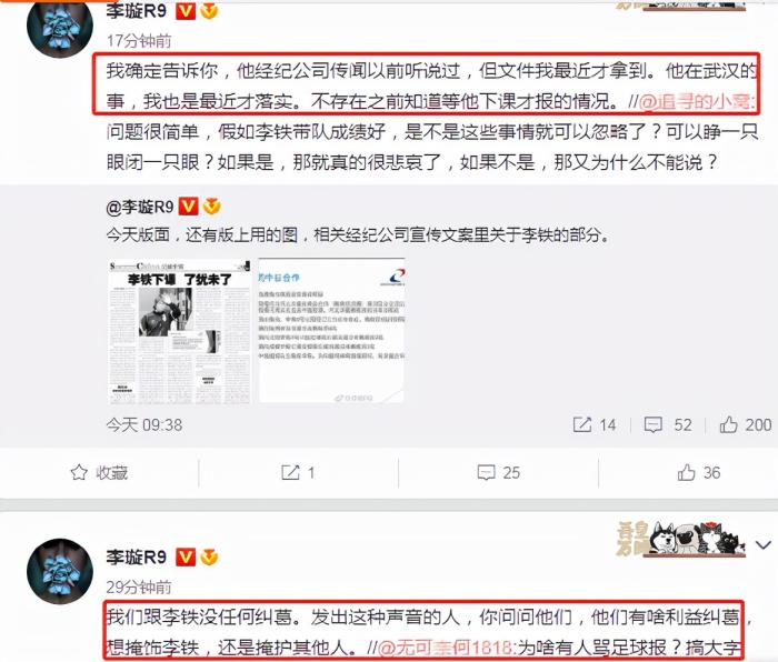 “我确定告诉你,他经纪公司传闻以前听说过,但文件我最近才拿到,他在武汉的事情,我也是最近才落实,不存在知道等他下课才报道的情况”。李璇还在社媒上表示,他们和李铁没有任何纠葛,言下之意,并没有私人恩怨。
