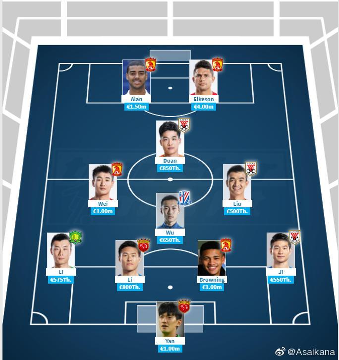 中超最贵本土球员名单(阵型4-4-2):