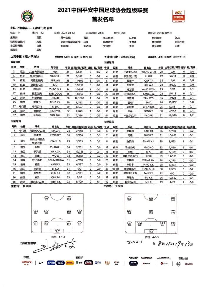 24直播网讯 北京时间8月12日,中超联赛第14轮,上海申花对阵天津津门虎,本场比赛申花只要赢球,就能掌握冲击前4的主动权。赛前,本场比赛的首发名单公布。