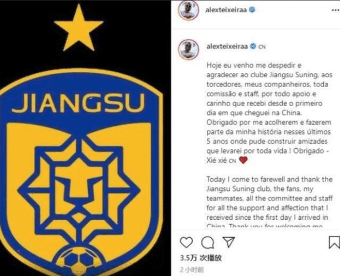 北京时间8月9日,职业生涯已获得9冠的大牌巨星特谢拉正式告别,他个人官宣离开中超,在社交平台发文表示:“今天我要和大家告别,感谢江苏苏宁俱乐部、球迷、队友、所有的工作人员和联赛组委会,感谢你们所有人的支持。从第一天抵达中国开始,我就感受到了大家的热情和对我的喜爱。谢谢你们,在这里我认识了很多可以长期相伴的朋友,这些将成为过去5年难忘旅程中的一部分。谢谢你,中国!”