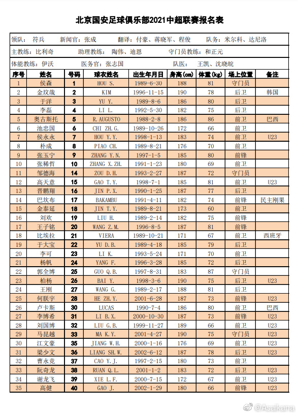 7月31日,巴西外援安德森-席尔瓦加盟北京国安获得官宣。安德森-席尔瓦今年23岁,司职中锋,身高1米86,上赛季在葡超有22次出场,其中12场首发,打进了7粒进球,他的身价为250万欧元。