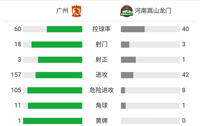 全场比赛补时2分钟,双方再无建树,最终,广州队凭借阿兰和洛国富的进球2-0战胜了河南嵩山龙门。
