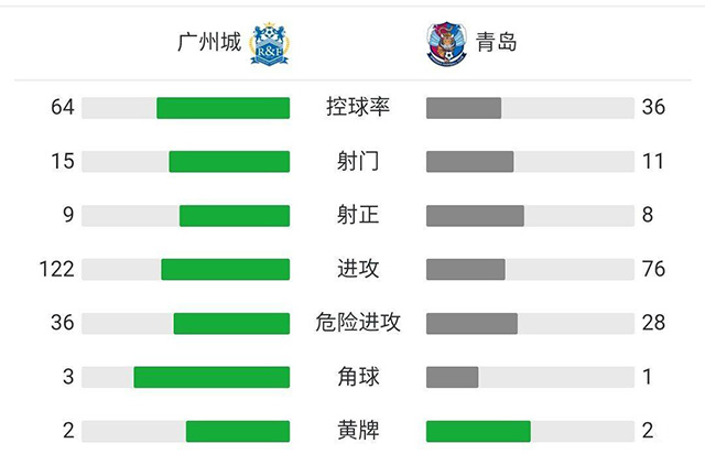 第4分钟,广州城取得领先,登贝莱中线附近长传,蒂亚戈单刀破门,广州城1-0青岛队。