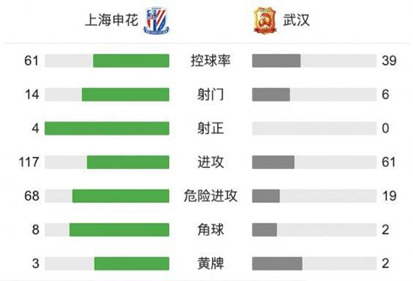 全场比赛结束,上海申花0-0武汉!