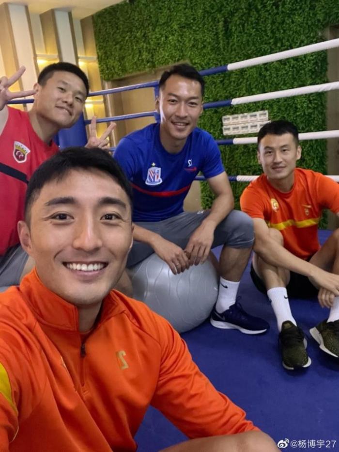 24直播网讯 7月20日消息,前江苏苏宁球员杨博宇在微博上晒出了和多位前队友的合影。