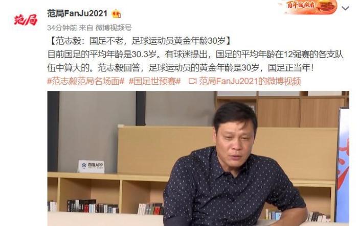 对此,范志毅说:“没有,30岁其实是最佳年龄。我自己去到国外以后感受到,我当时去水晶宫是28岁将近29岁,现在整个足球运动,包括科学的发展,让足球运动员的退役年龄越来越延后。”