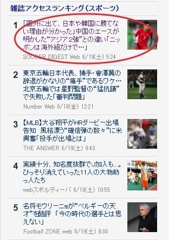 而武磊这篇采访也引发了日本和韩国媒体的强烈关注。北京时间6月19日,多家日媒、韩媒转载了武磊的这篇专访,该新闻均位列两国热门新闻前列,引发了热烈讨论。