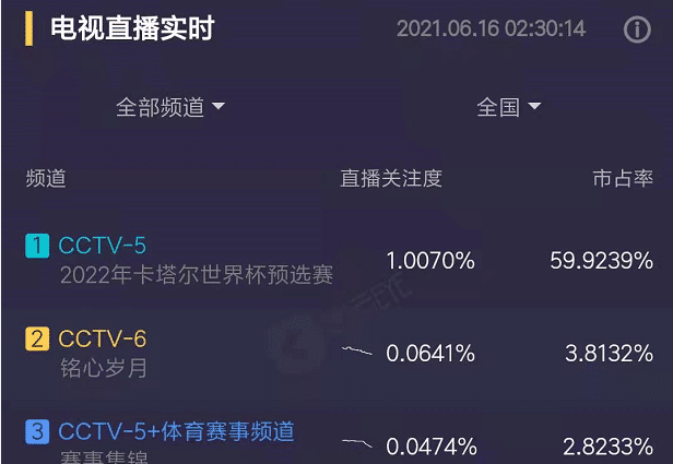 国足3-1复仇叙利亚队的比赛收视率破1,能够在深夜2点多有破1的收视率是非常难得的。当国足比赛的下半场和德法大战的上半场同时进行,德法大战的收视率逐渐拉升到突破0.4,但是和国足相比,依旧是有明显的差距。