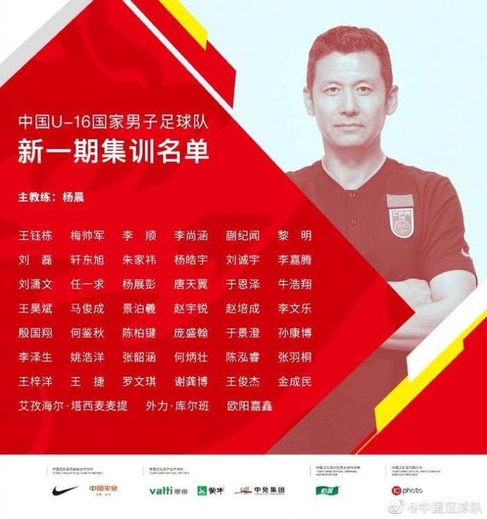 24直播网讯 今天下午,中国足协公布了U16国少队第二期集训45人名单,杨晨挂帅,将带领球队于6月16日-7月5日在云南昆明海埂体育训练基地组织集训。