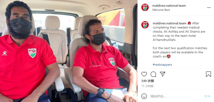 马尔代夫国家队在其社交媒体上写到:“完成了必要的检查之后,阿什法克和沙米斯正在前往球队下榻酒店的路上,两名球员都能参加接下来的两场世预赛中。”