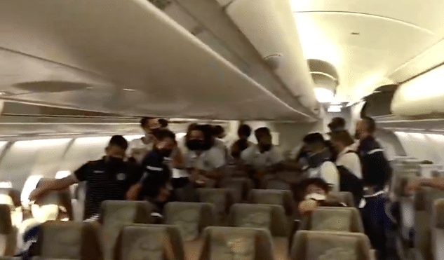 3日下午1点,包括足协正副主席在内的国足一行58人,从上海浦东国际机场出发飞往阿联酋。目前国足将士的专机已经抵达迪拜,根据记者马德兴晒出的视频来看,为了防止任何可能被感染的情况发生,国足全体人员在预备下机前已经穿好防护服戴好了护目镜,“全副武装”的以最高的防疫标准进行防范。