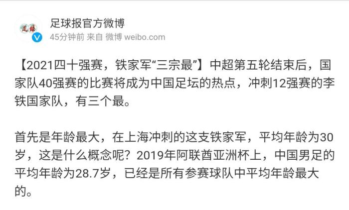 24直播网讯 最近,国足已经在上海集结,开始了新一期的备战。今天,《足球报》发文点评了当前这支国足的“三宗最”。