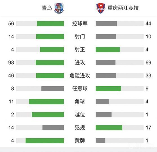 全场比赛结束,最终青岛1-0击败重庆!