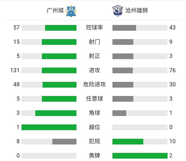 广州城0-0沧州 蒂亚戈中框+屡失良机韩佳奇扑单刀