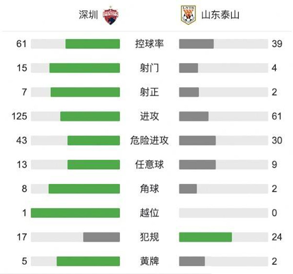 全场比赛结束,最终深足2-2战平山东泰山。