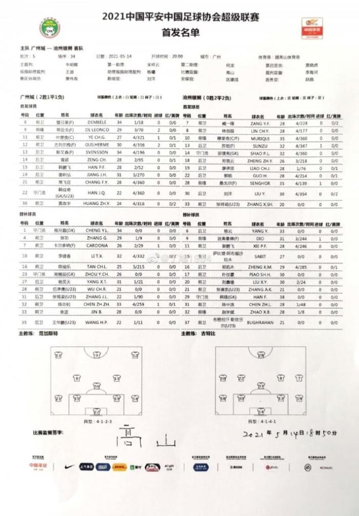 24直播网讯广州城首发:22-韩佳奇、13-斯文森、14-曾超、15-韩鹏飞、19-姜积弘、8-登贝莱、11-叶楚贵、12-吉列尔梅、21-常飞亚、36-黄政宇、9-蒂亚戈
