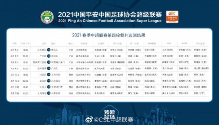 主裁判:甄伟(天津),VAR:马力(北京)