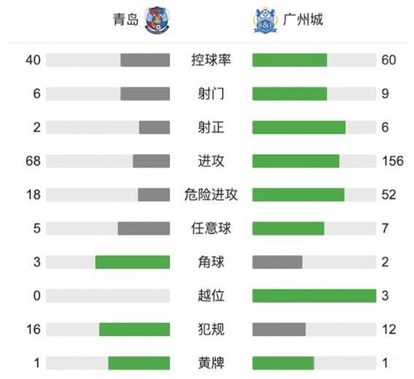 第79分钟,广州城率先取得进球!右路吉列尔梅一记斜塞,禁区右侧唐淼跟进,底线位置斜传门前,蒂亚戈无人盯防,推射空门得手!广州城1-0青岛!