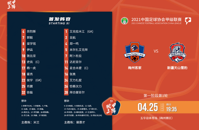 24直播网讯 新赛季中超中甲拉开大幕,有球迷表示不知道前国脚唐诗去了哪里,因为在广州队的一线队名单中没有看到他的名字。原来唐诗去到了中甲的球队梅州客家,租借加盟一年。而新赛季中甲首轮,梅州客家VS新疆天山雪豹的比赛中没有发现唐诗的名字,根据记者的报道显示,唐诗确实是租借到了梅州客家,但是他在中甲赛季开始前受伤了,所以无法出现在球队的揭幕战。