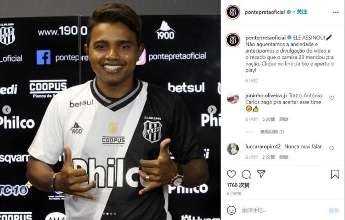24直播网讯 北京时间4月15日,巴乙球队庞特普雷塔官方宣布,前广州城外援雷纳迪尼奥正式加盟球队。