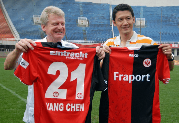 1998年,杨晨选择闯荡欧洲五大联赛,加盟了当时的德甲球队法兰克福,首个赛季便成为了球队的当家射手,单赛季代表球队23场比赛打进了8粒德甲进球,第二个赛季27场4球,第三个赛季15场4球,整体表现可以说达到了中国留洋前锋的巅峰,至今仍未有人能打破他的留洋纪录。