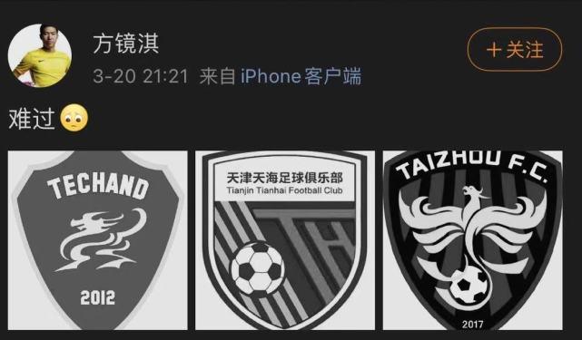 方镜淇发布了三张自己曾效力过的俱乐部的黑白队徽照片,直言自己经历了这么多次解散,实在很难过。值得注意的是,这已经是他连续三年里,经历第三次所效力球队的解散了。