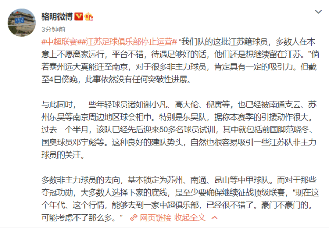 而对于那些江苏队阵中的非主力球员,则基本锁定为苏州、南通、昆山等中甲球队。一位江苏队队内人士透露,这批江苏籍球员多数人在本意上不愿离家远行,而是继续留在江苏。据悉,像谢小凡、高大伦、倪寅等年轻球员,已经被南通支云、苏州东吴等南京周边地区球会相中。下赛季,他们大概率将会在中甲赛场,继续为江苏足球贡献自己的力量。