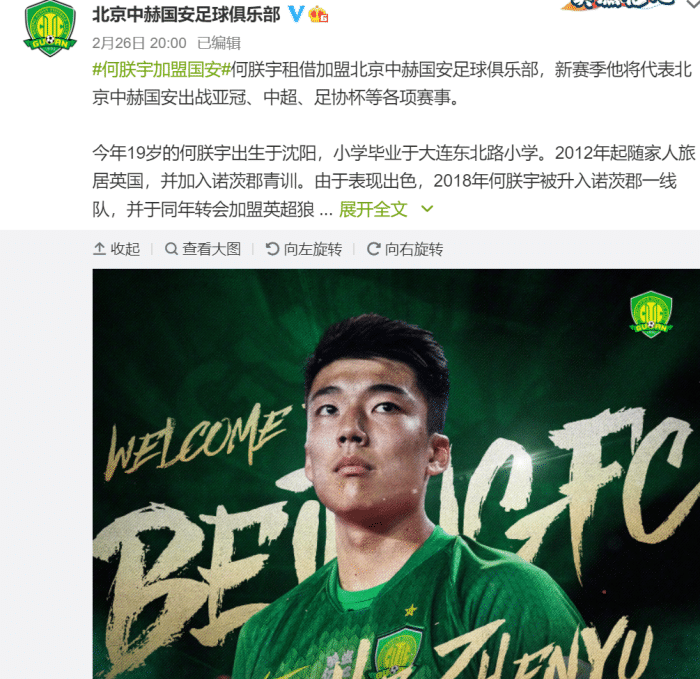 24直播网3月4日讯 随着中超联赛进入至暗时刻,江苏苏宁和天津泰达已经“收拾行李”准备离开,作为中超“八冠王”的广州恒大也不敢吭声。万万没想到的就是,有一家俱乐部避其锋芒,不仅未改“中性化”队名还连续引进三名球员。北京国安在官宣曹永竞与高天意两位年轻球员之后,还将狼队海归球员何朕宇招致麾下。值得一提的就是,何朕宇最爱吃西餐,还与上赛季表现出色的戴伟浚曾经同袍。