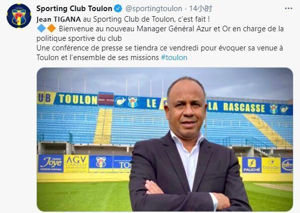 法国第三级别土伦俱乐部,已在本周一正式任命蒂加纳为俱乐部总经理。